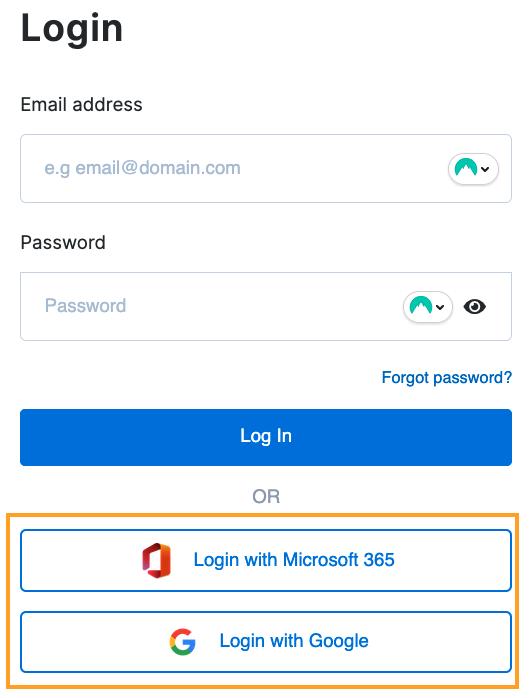 DropSuite is the tool that Borrow A Geek uses to backup and archive emails sent to your organisation. By default, you should use your Microsoft email address and password (if your organisation has Microsoft 365) or your Google Workspace email and password (if your organisation uses Google Workspace) by clicking on the respective login buttons on the Dropsuite Login page.